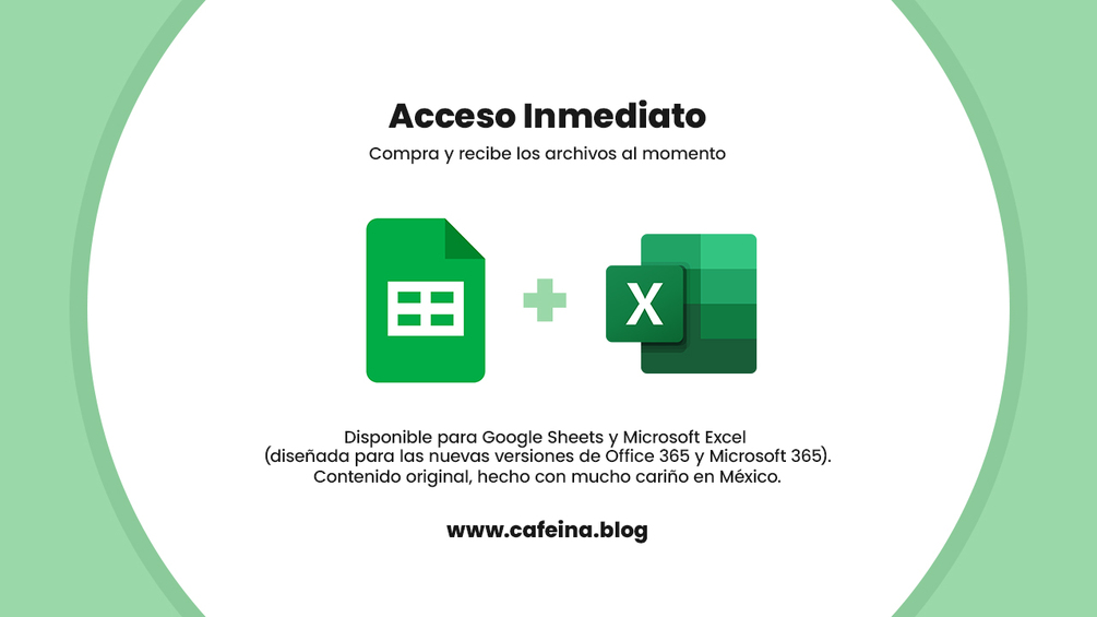 • Disponible en versión para Google Sheets + Excel. Crea una copia de la plantilla en tu Google Drive, y tendrás acceso a ella de por vida, y a todas sus actualizaciones.